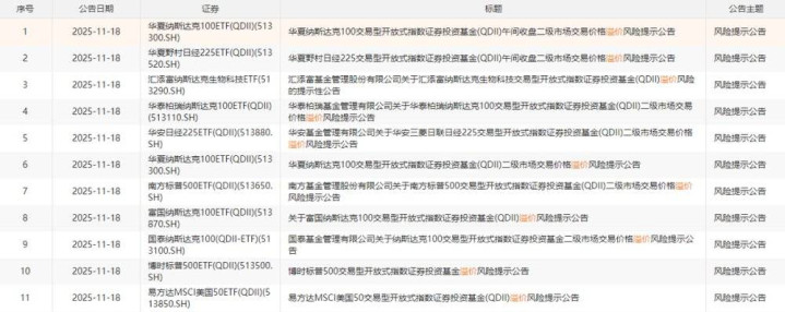 而11月开始,A股面临回调压力,境外ETF再受青睐,一个月内机构关于高溢价风险提示的公告就达上百条。