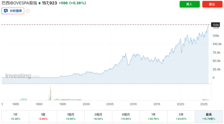 目前两只巴西ETF跟踪的IBOVESPA指数是拉丁美洲最大股指。今年以来,该指数已累计上涨25.08%,在11月初历史上首次突破15万点,部分机构预测2026年指数可能进一步冲击17万点,即明年预计还有13%的涨幅。